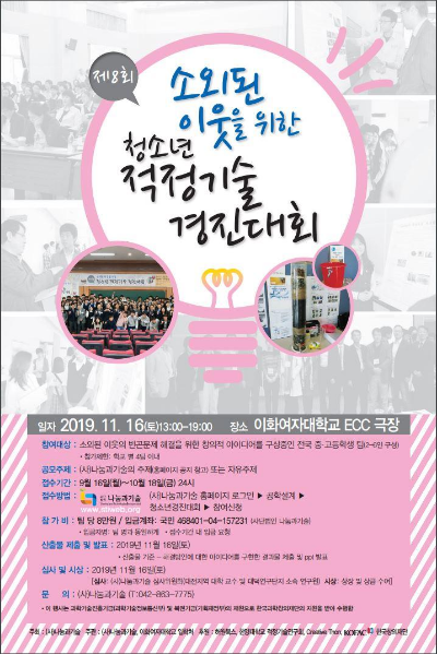 저희는 아래에 있는 포스터에 해당하는 "청소년 적정기술 경진대회"에 나가, 11월 16일 이화여자대학교에서 발표를 진행했습니다.